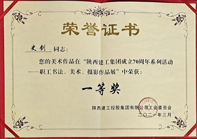 工會(huì)邢煜被評(píng)選為2020年度“集團(tuán)優(yōu)秀工會(huì)工作者”稱號(hào),土建室史劍參選的美術(shù)作品榮獲集團(tuán)成立70周年“職工書法、美術(shù)、攝影作品展”一等獎(jiǎng)。