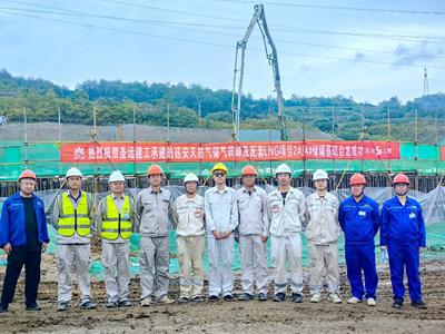 此次澆筑工程,兩臺儲罐基礎混凝土總量超過1萬立方米。為確保節點任務高質量完成,項目部統籌規劃,每日召開問題對接會,與業主及各參建單位協調溝通,緊密配合,掃除各項困難。科學管理,規范施工,狠抓現場安全文明施工,嚴格執行質量管理規定,確保了施工的質量、工期和安全。