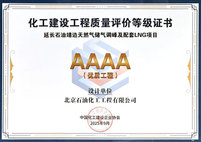 近日,北京石油化工工程有限公司(簡稱“北油工程”)總承包的延長石油靖邊天然氣儲氣調峰及配套LNG項目,憑借過硬的工程質量與精細化管理水平,榮獲中國化工建設企業協會頒發的化工建設工程質量評價AAAA級(優質工程)證書,充分彰顯了公司在化工工程建設領域的核心競爭力與行業標桿地位。